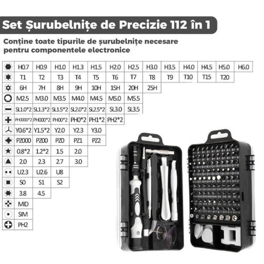 Set Profesional de Șurubelnițe de Precizie 115 în 1 – Kit Magnetic de Reparații cu 98 de Biți