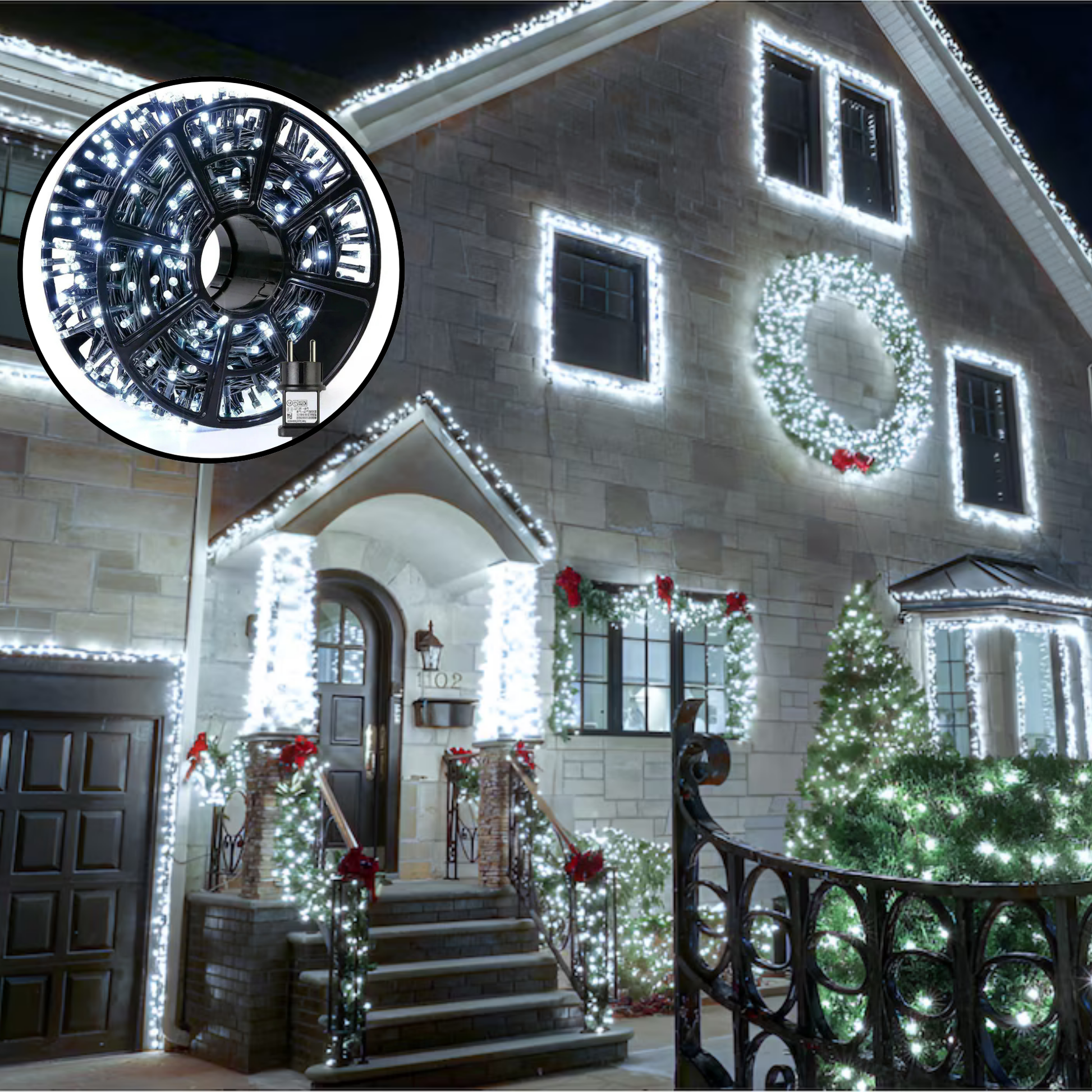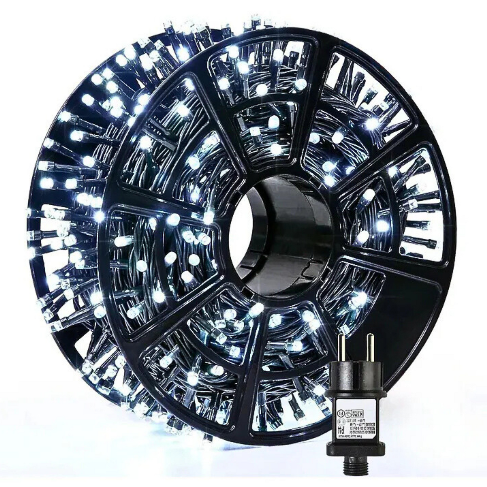Instalație Luminoasă 50M LED Alb Rece - 8 Jocuri de Lumini, Interior/Exterior