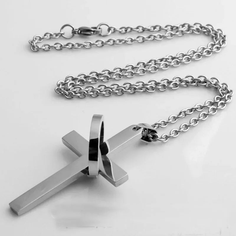 Lanț cu Pandantiv Cruce și Cerc din Oțel Inoxidabil - Colier pentru Bărbați
